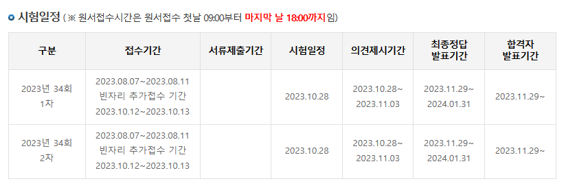 2023년 제34회 공인중개사시험의 합격자 발표일은