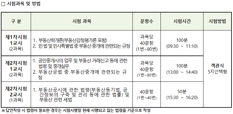 공인중개사 시험은 1차와 2차로 나눠져 있으며 두 시험은 같은 날에 시행됩니다.