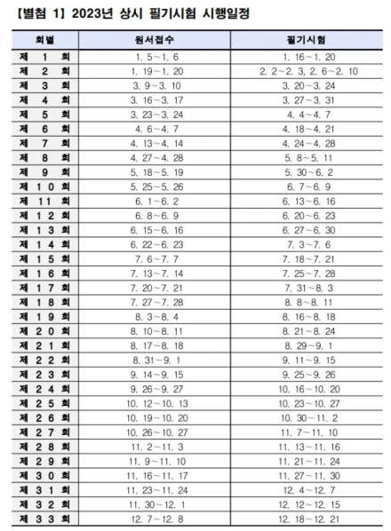 1회부터 23회까지 진행되며 올해 가장 마지막 시험은 12월 22일입니다.