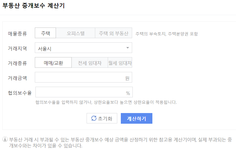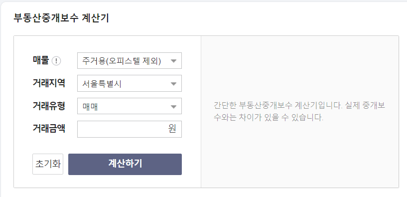 부동산 중개수수료 계산하는 과정이 번거롭다고 느끼신다면 네이버 또는 다음 등 포털 사이트를 부동산 중개수수료 계산기를 이용하시면 간편하게 확인할 수 있습니다.