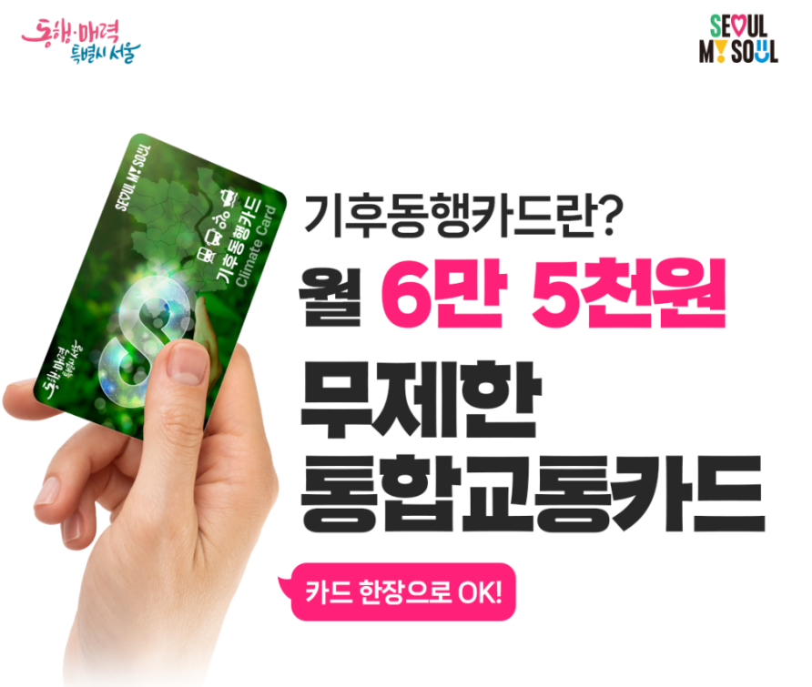 오늘은 서울시 대중교통비를 절약할 수 있는 제도인 월 6만 5천 원까지 무제한으로 이용할 수 있는 교통카드인 기후동행카드에 대하여 살펴보도록 하겠습니다.