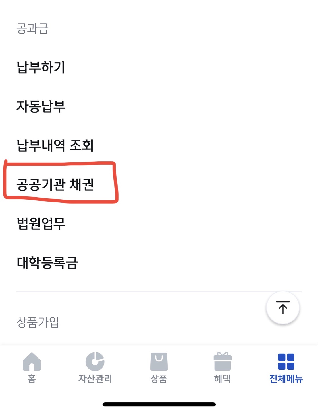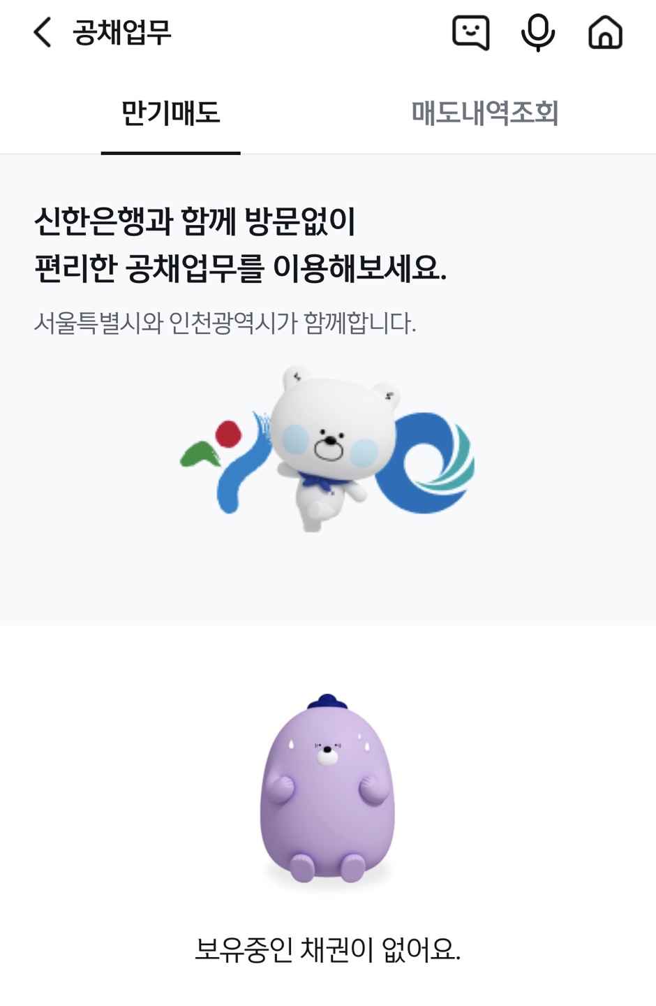 🔹전체메뉴 > 공과금 > 공공기관 채권 > 만기매도